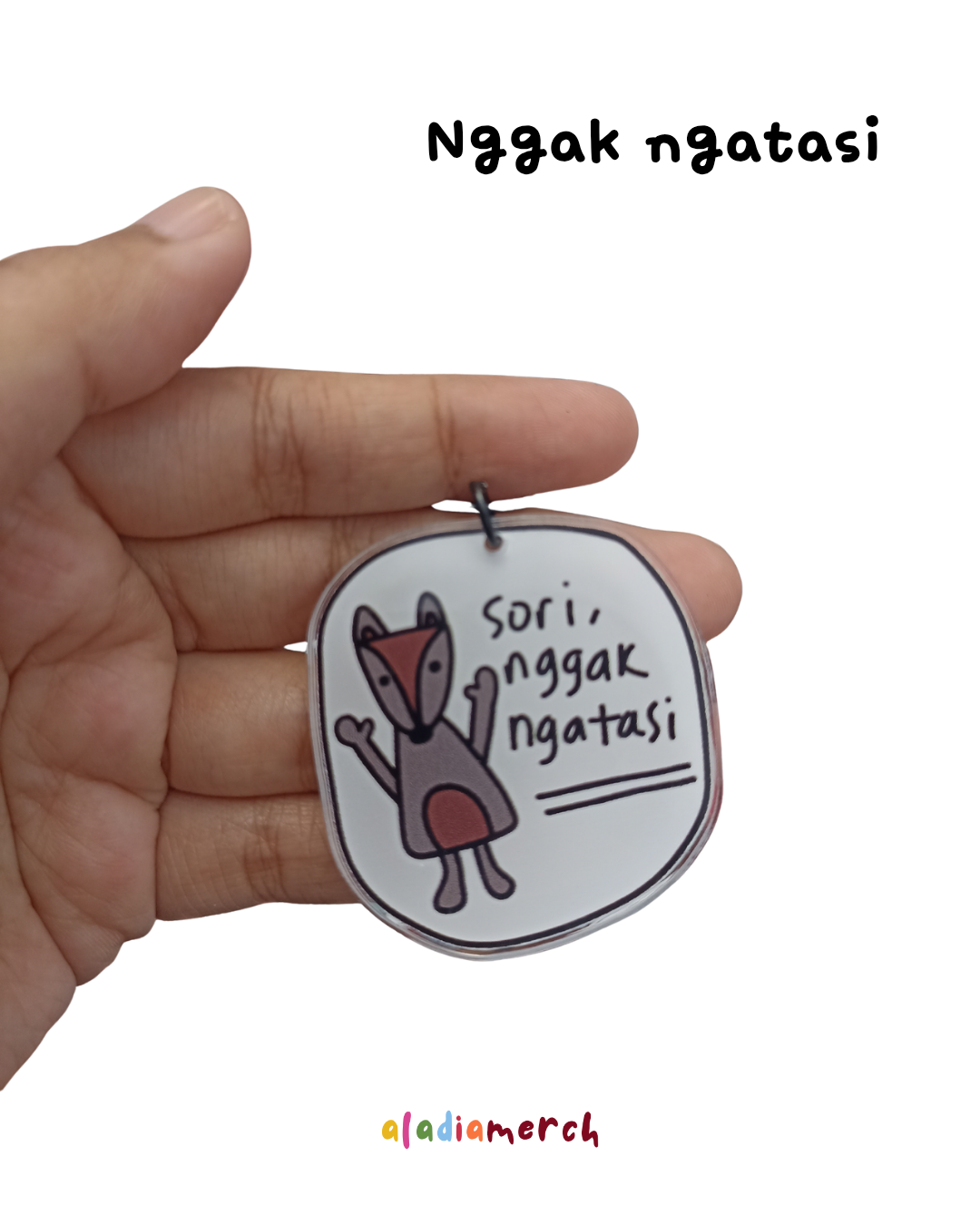 Gantungan kunci Aladia Merch berisi kata-kata demotivasi yang nyentil dan jujur. Pengingat kecil bahwa hidup nggak selalu naik—dan itu wajar. Cocok buat kamu yang capek dimotivasi tapi tetap harus jalan.