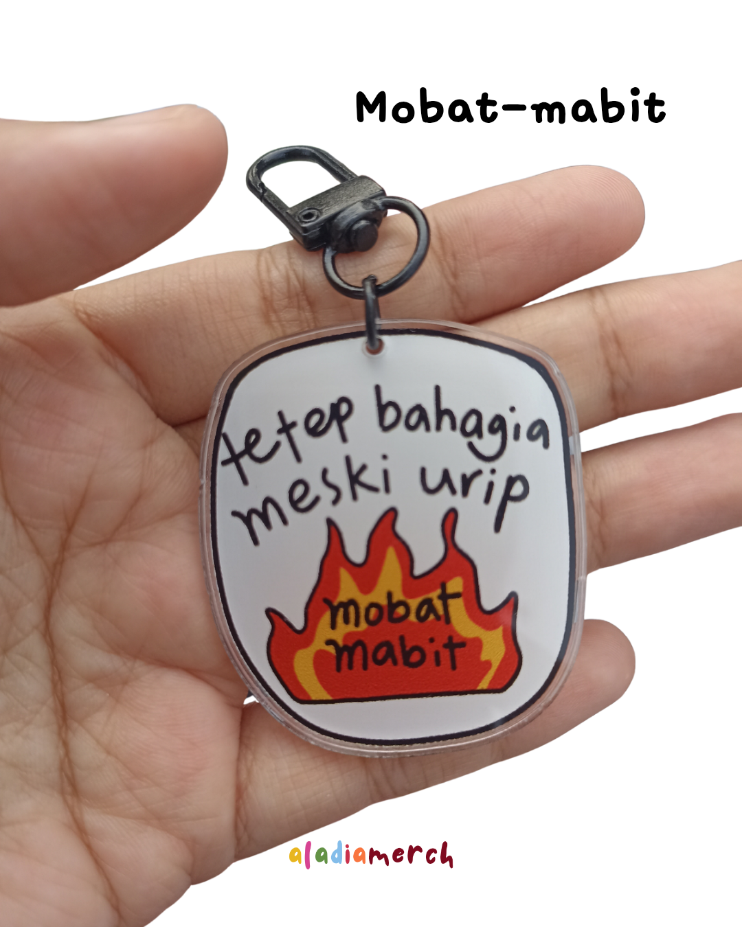 Gantungan kunci Aladia Merch berisi kata-kata demotivasi yang nyentil dan jujur. Pengingat kecil bahwa hidup nggak selalu naik—dan itu wajar. Cocok buat kamu yang capek dimotivasi tapi tetap harus jalan.